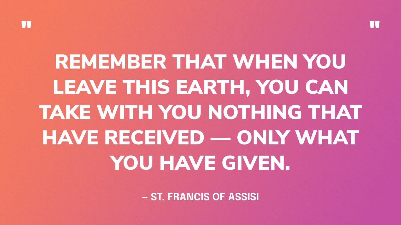 “Remember that when you leave this earth, you can take with you nothing that have received — only what you have given.”