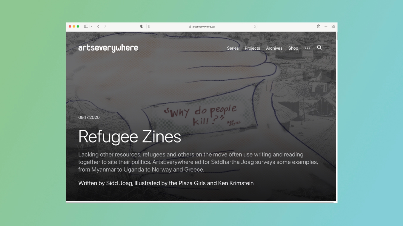 The organization works in a series approach, as creative projects convene under themes or issues that affect marginalized groups most. A collection of refugee zines outlines the value of zine-making on refugee communities.